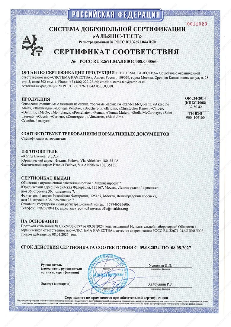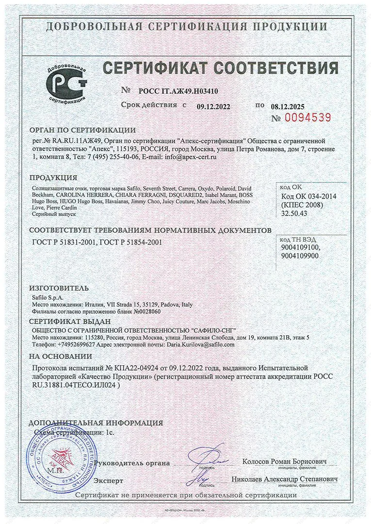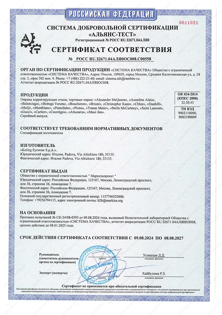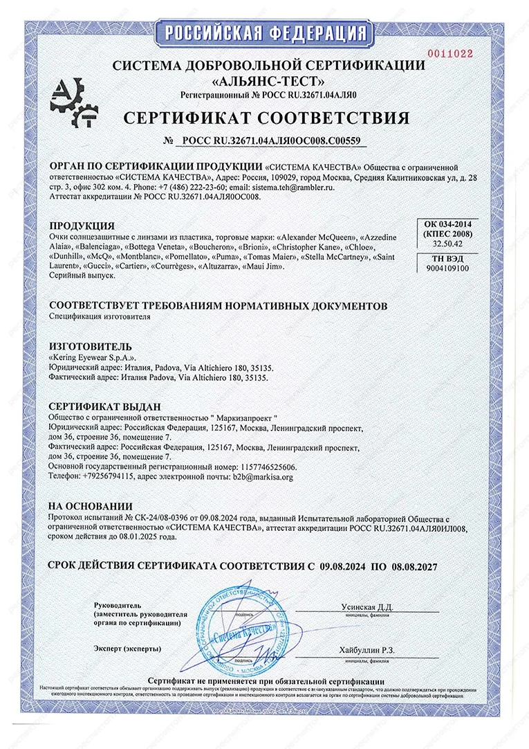 Сертификат соответствия — документ, подтверждающий соответствие продукции требованиям качества и безопасности, установленными для нее действующими стандартами и правилами.